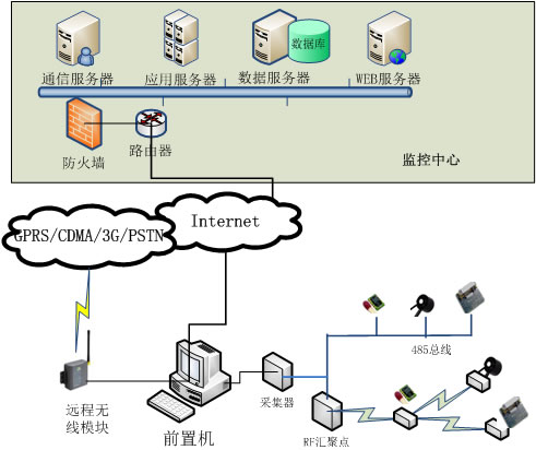 環(huán)境監(jiān)測報警系統(tǒng)通過采集現(xiàn)場傳感器數(shù)據,并將數(shù)據通過有線、無線方式實時傳輸?shù)焦ぷ髡旧线M行監(jiān)測、存儲與分析,輸出曲線與多類圖表,進行統(tǒng)計分析和檔案記錄;系統(tǒng)提供手機、短信和郵件多種遠程報警功能,供事后分析處理;可根據用戶應用靈活配置各類環(huán)境因子傳感器;系統(tǒng)具有分級和角色權限管理功能,為不同用戶管理提供了一個多級配置管理的監(jiān)控平臺,為現(xiàn)場管理和質量控制提供強有力的技術保障。系統(tǒng)結構如下圖: