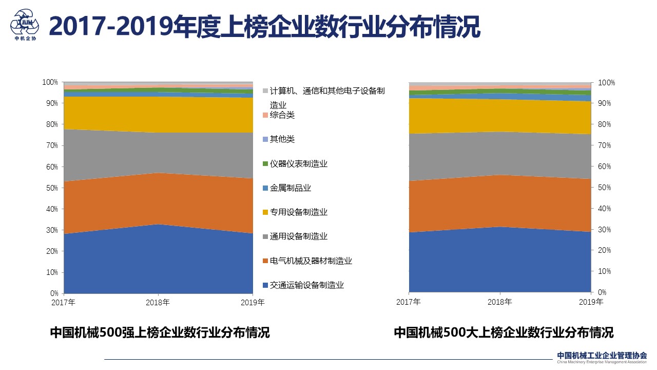 從上榜企業(yè)的行業(yè)分布分析,入圍企業(yè)分布在:交通運(yùn)輸設(shè)備制造業(yè),通用設(shè)備制造業(yè),電氣機(jī)械及器材制造業(yè),專用設(shè)備制造業(yè),金屬制品業(yè),儀器儀表制造業(yè),計(jì)算機(jī)、通信和其他電子設(shè)備制造業(yè)、綜合類和其他類等九類,其中,交通運(yùn)輸設(shè)備制造業(yè)、電氣機(jī)械及器材制造業(yè)、通用設(shè)備制造業(yè)、專用設(shè)備制造業(yè)等四個(gè)行業(yè)上榜企業(yè)數(shù)超500強(qiáng)企業(yè)的90%。
