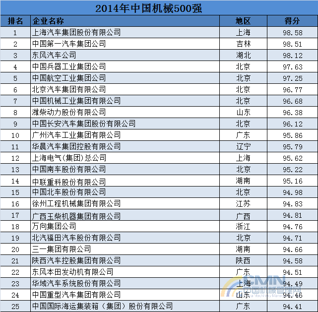 2014年中國(guó)機(jī)械500強(qiáng)排名