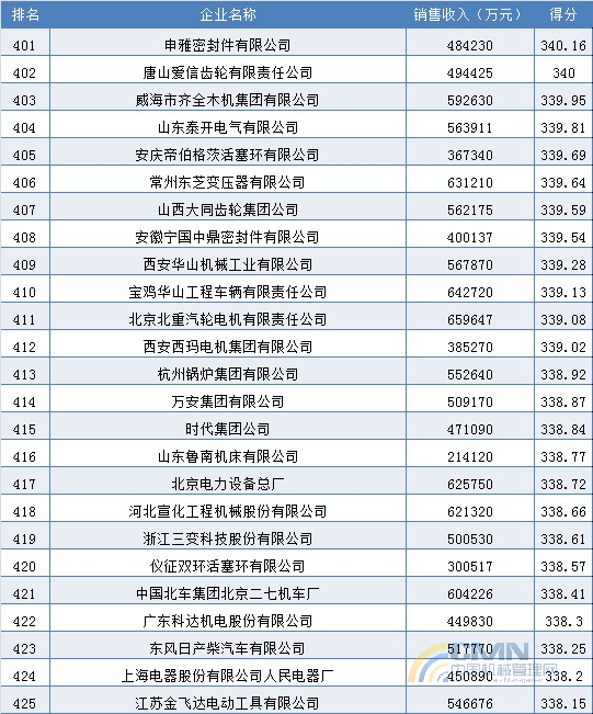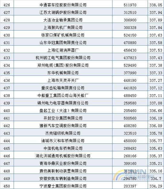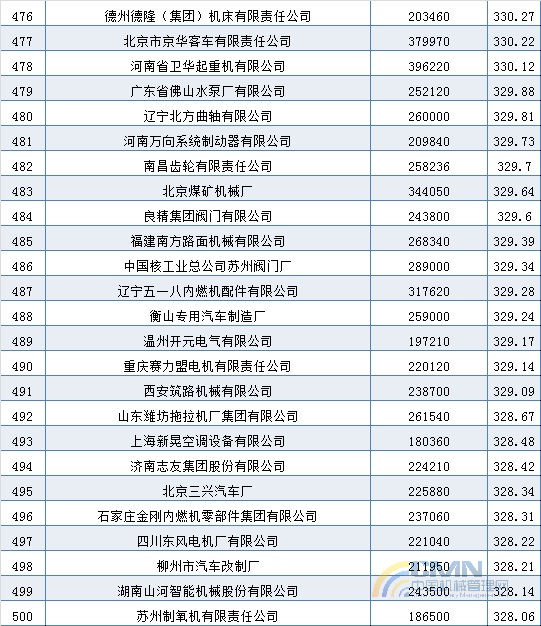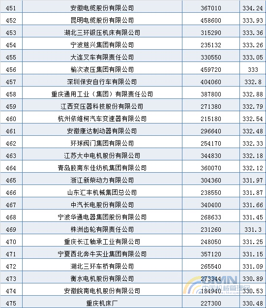 2004年中國(guó)機(jī)械500強(qiáng)排名(401-500)