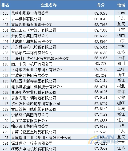 2005年中國機(jī)械500強(qiáng)排名(401-500)