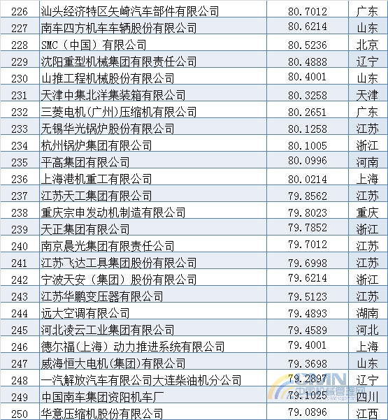 2006年中國(guó)機(jī)械500強(qiáng)排名(201-300)