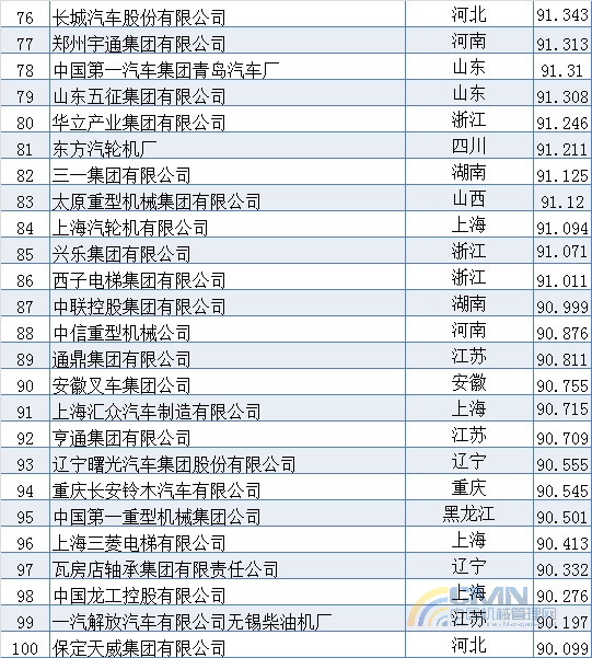 2007年中國(guó)機(jī)械500強(qiáng)排名(1-100)
