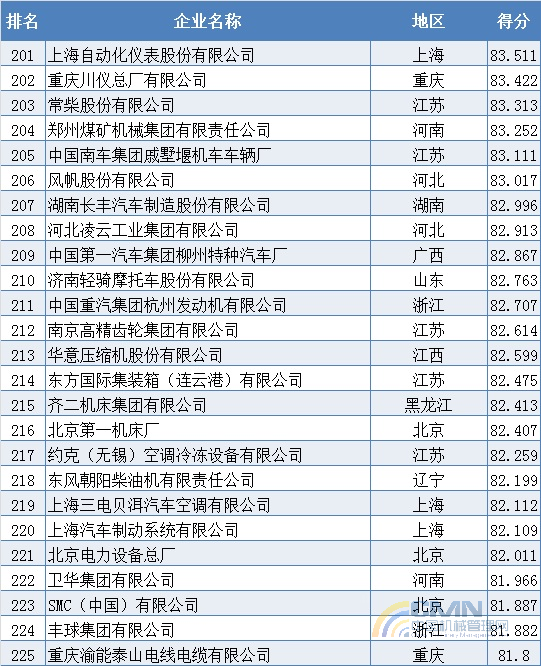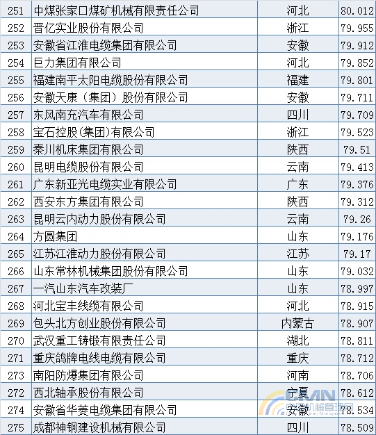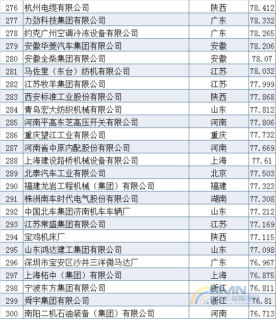 2007年中國機(jī)械500強(qiáng)排名(201-300)