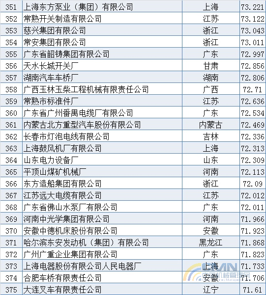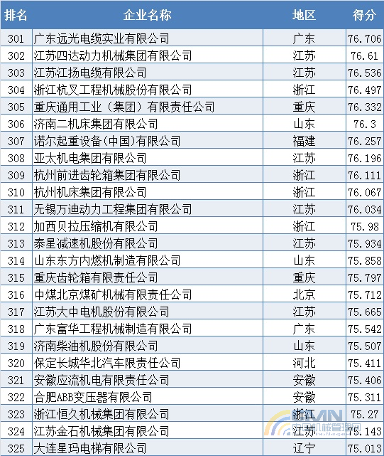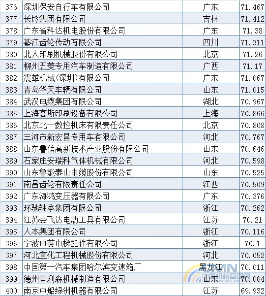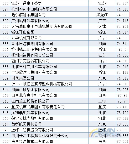 2007年中國(guó)機(jī)械500強(qiáng)排名(301-400)