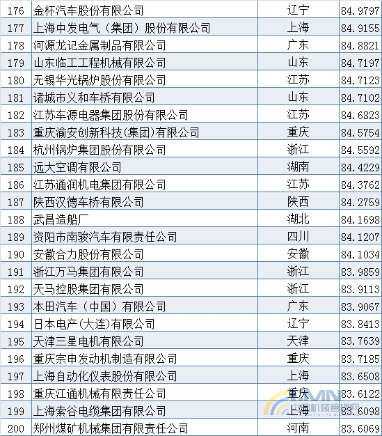 2008年中國(guó)機(jī)械500強(qiáng)排名(101-200)