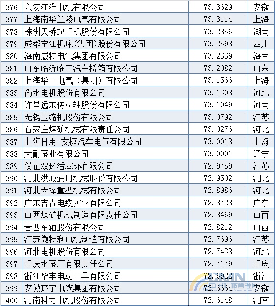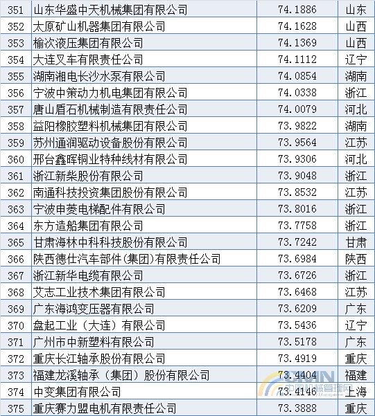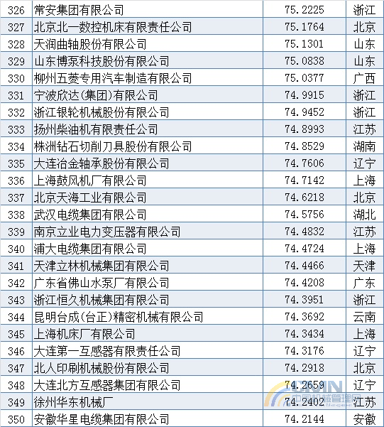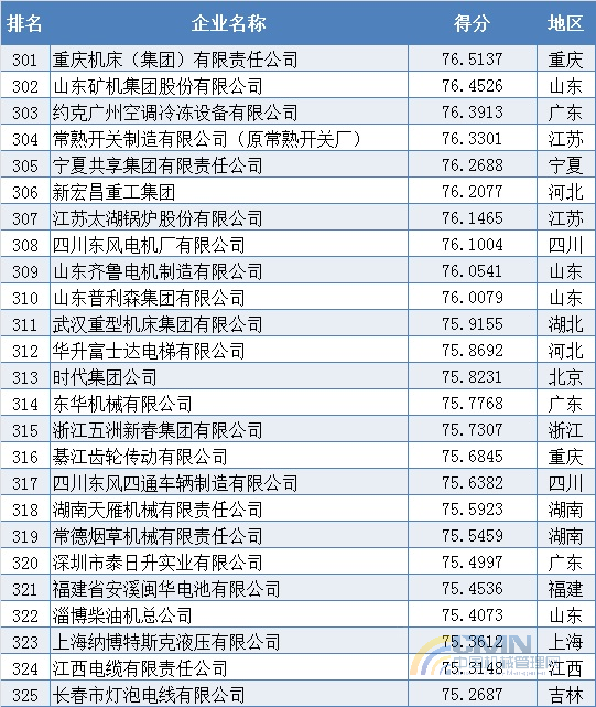 2010年中國機械500強排名(301-400)