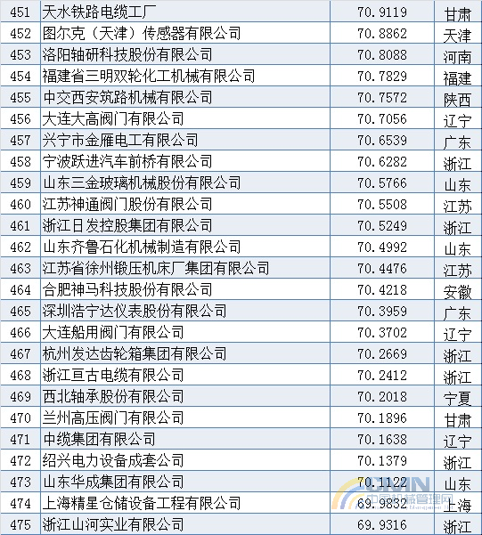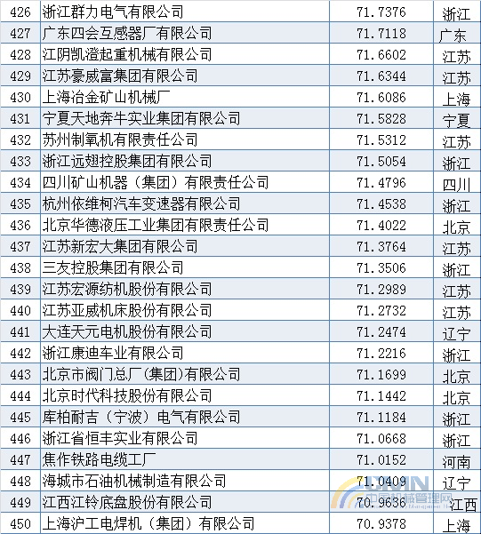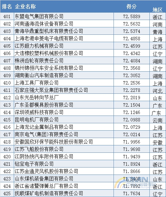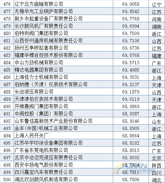 2010年中國機(jī)械500強(qiáng)排名(401-500)
