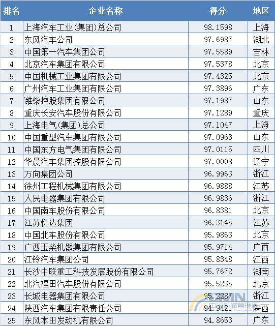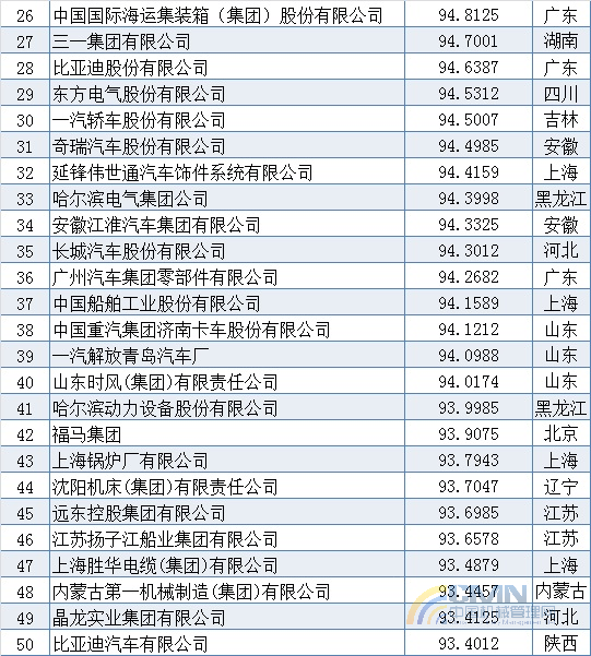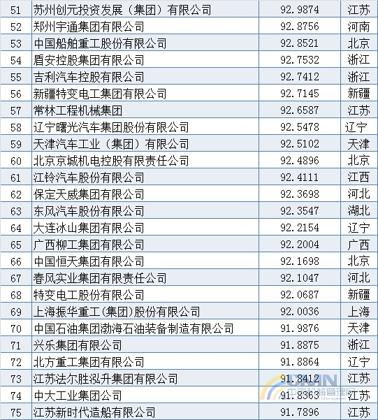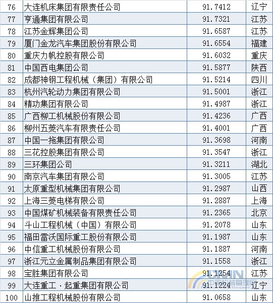 2011年中國機(jī)械500強(qiáng)排名(1-100)