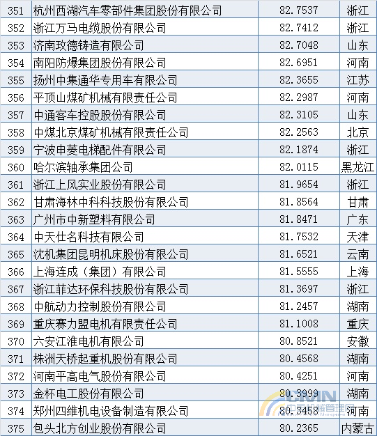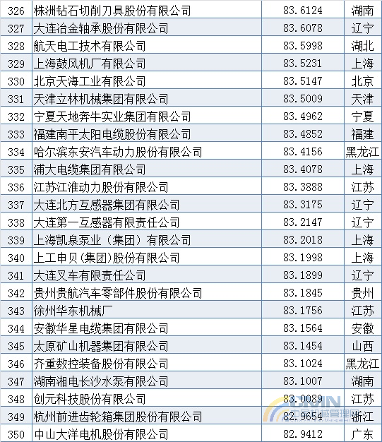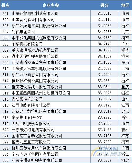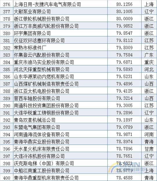 2011年中國機(jī)械500強(qiáng)排名(301-400)