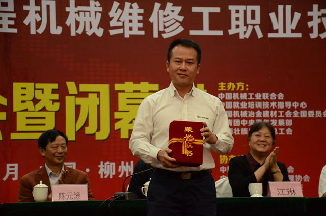 在全體參賽選手、裁判員和競賽工作人員的共同努力下,圓滿完成既定的各項議程,落下帷幕。10月30日上午召開技術(shù)總結(jié)會議和表彰大會暨閉幕式。出席表彰大會暨閉幕式的領(lǐng)導(dǎo)有:中國機械工業(yè)聯(lián)合會執(zhí)行副會長于清笈、廣西壯族自治區(qū)總工會副巡視員、競賽指導(dǎo)委員會副主任陳元滾、中國工程機械工業(yè)協(xié)會會長祁俊、廣西機械工業(yè)聯(lián)合會會長覃彥瑞、機械工業(yè)經(jīng)濟管理研究院院長、黨委書記、國務(wù)院發(fā)展研究中心研究員徐東華、機械工業(yè)職業(yè)技能鑒定指導(dǎo)中心執(zhí)行主任史仲光、中國工程機械工業(yè)協(xié)會副秘書長江琳、廣西壯族自治區(qū)總工會勞動保護部部長王志忠、廣西柳工集團有限公司黨委副書記、工會主席王相民、國家工程機械質(zhì)量監(jiān)督檢驗中心副主任雷曉衛(wèi)。表彰大會由徐東華院長主持。
