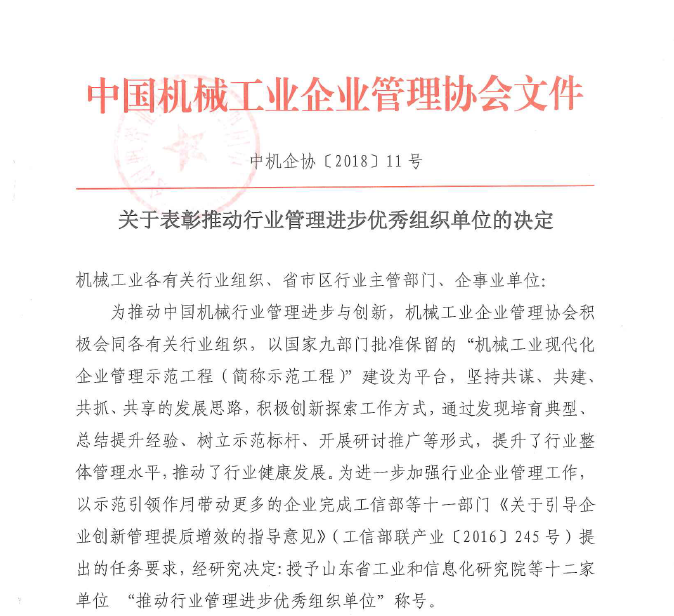關(guān)于表彰推動行業(yè)管理進(jìn)步優(yōu)秀組織單位的決定-中機(jī)企協(xié)〔2018〕11號.pdf