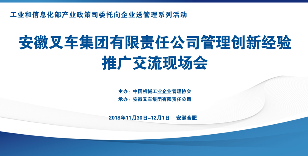 2018年11月29日-12月1日,工信部產(chǎn)業(yè)政策司委托中國(guó)機(jī)械工業(yè)企業(yè)管理協(xié)會(huì)(簡(jiǎn)稱中機(jī)企協(xié))主辦、安徽叉車集團(tuán)有限責(zé)任公司(簡(jiǎn)稱合力)承辦的機(jī)械行業(yè)“向企業(yè)送管理”現(xiàn)場(chǎng)交流活動(dòng)在安徽省合肥市隆重舉辦。工信部產(chǎn)業(yè)司產(chǎn)業(yè)組織處處長(zhǎng)匡佩遠(yuǎn),趙薛憶,中機(jī)企協(xié)理事長(zhǎng)孫伯淮,常務(wù)副理事長(zhǎng)李玲,副理事長(zhǎng)于中赤、張德進(jìn)、張愛群,以及來(lái)自機(jī)械行業(yè)的企業(yè)代表180余人參加了活動(dòng)。