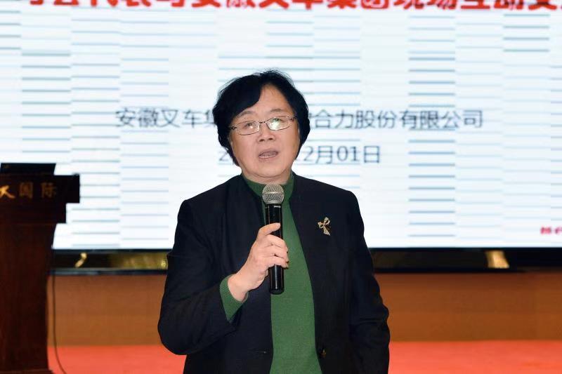 中機(jī)企協(xié)常務(wù)副理事長(zhǎng)李玲在機(jī)械行業(yè)“向企業(yè)送管理” 現(xiàn)場(chǎng)交流活動(dòng)--安徽叉車集團(tuán)互動(dòng)交流會(huì)上發(fā)言