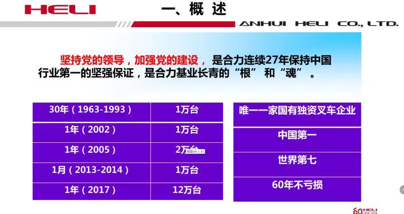 從合力的交流中歸納該企業(yè)的管理特點(diǎn):一是系統(tǒng)性,在戰(zhàn)略管理、國(guó)際化經(jīng)營(yíng)、兩化融合、企業(yè)運(yùn)營(yíng)、人力資源管理等方面全面開展,特別是精益管理、卓越績(jī)效管理方面很有成效。二是持續(xù)性,咬定青山不放松、持之以恒抓管理,近10年對(duì)精益管理常抓不懈,連續(xù)多年開展卓越績(jī)效、人才隊(duì)伍建設(shè),確保企業(yè)質(zhì)量效益穩(wěn)步提升,取得優(yōu)異成績(jī)。三是成效性,合力集團(tuán)主要經(jīng)濟(jì)指標(biāo)經(jīng)連續(xù)27年位居中國(guó)叉車行業(yè)第一位,2011年至今始終名列世界八強(qiáng)。