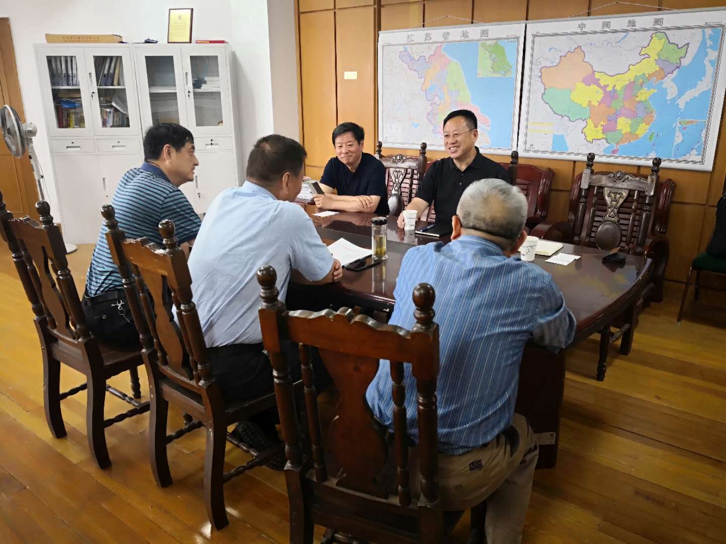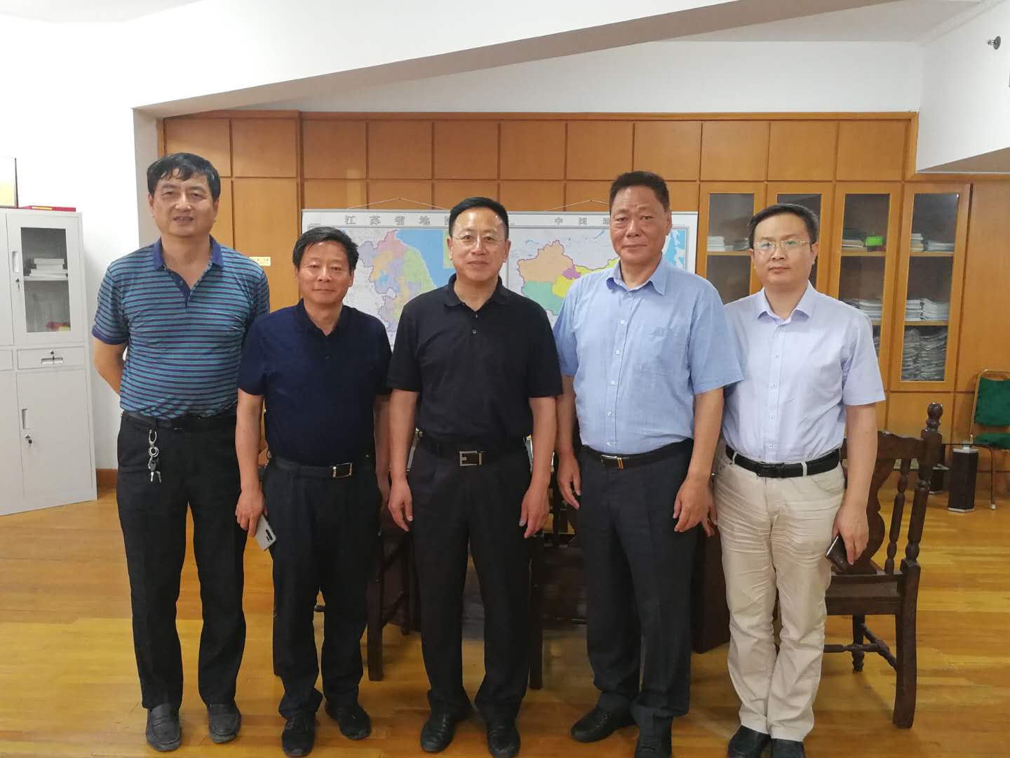 于忠赤會長(中)、楊一平常務(wù)副會長(左二)、楊征秘書長(右一)與江蘇省機(jī)械行業(yè)協(xié)會李春江會長(右二)、王云秘書長(左一)合影
