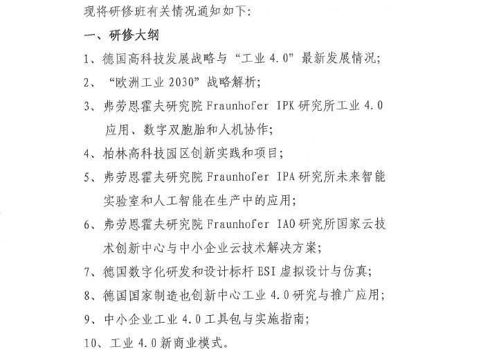 關(guān)于在德國(guó)舉辦"工業(yè)4.0"最新實(shí)踐與"歐洲工業(yè)2030"戰(zhàn)略高端研修班的通知