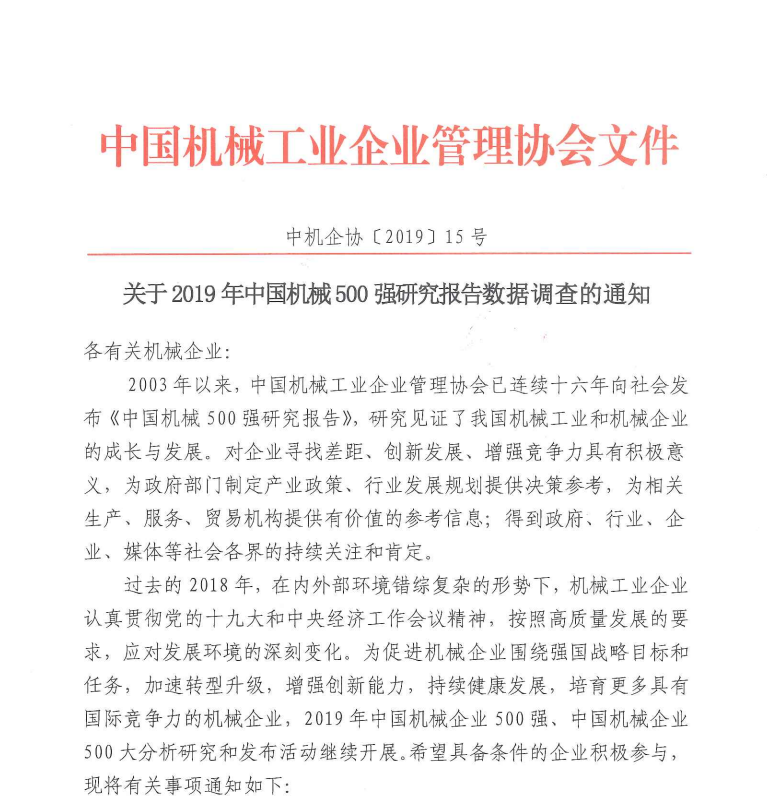 中機企協(xié)〔2019〕15號 關(guān)于2019年中國機械500強研究報告數(shù)據(jù)調(diào)查的通知.pdf