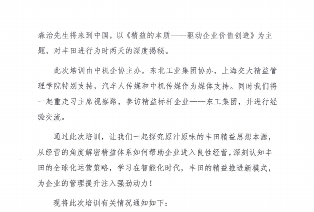 關于舉辦《精益的本質(zhì)——驅(qū)動企業(yè)價值創(chuàng)造》高端培訓的通知