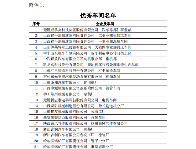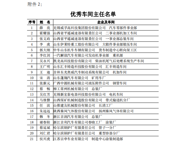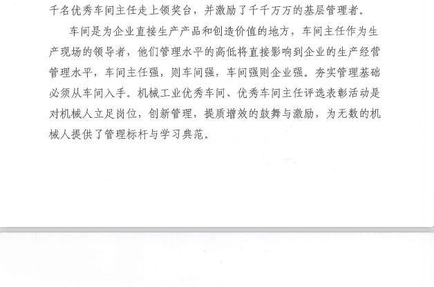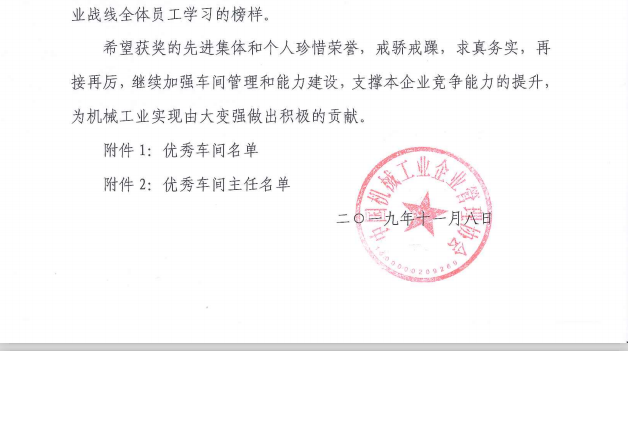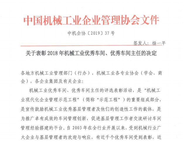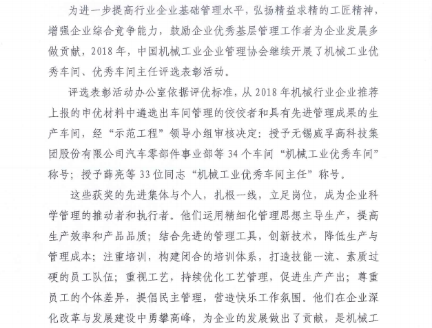 關(guān)于表彰2018年機械工業(yè)優(yōu)秀車間、優(yōu)秀車間主任的決定