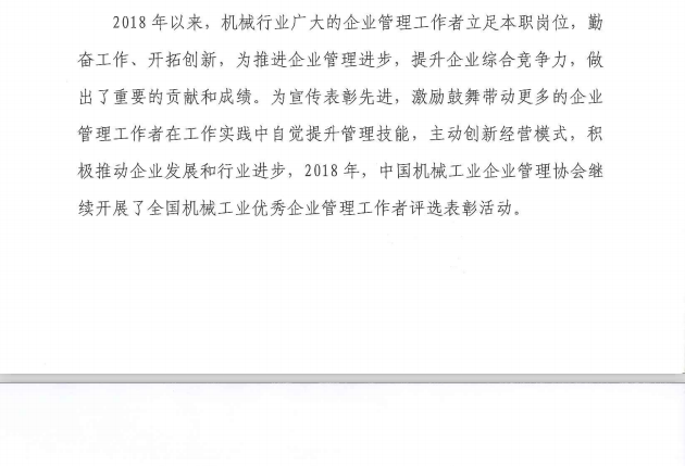 關(guān)于表彰第八屆機(jī)械工業(yè)優(yōu)秀企業(yè)管理工作者的決定