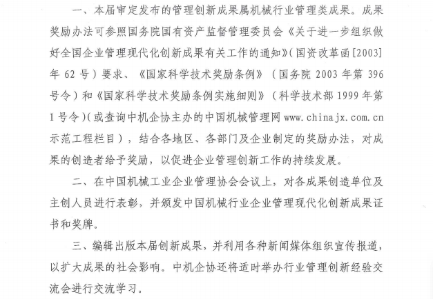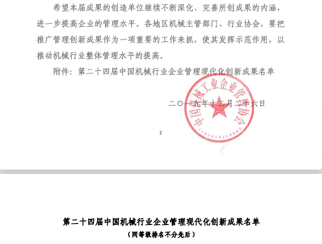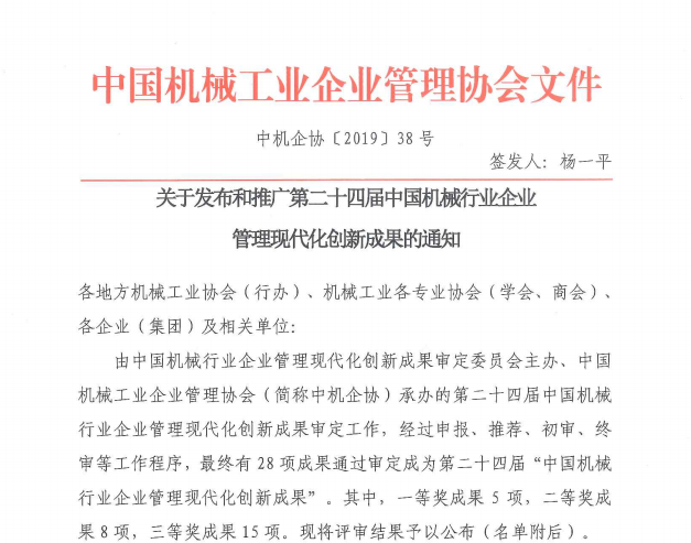 關于發(fā)布和推廣第二十四屆中國機械行業(yè)企業(yè)管理現(xiàn)代化創(chuàng)新成果的通知