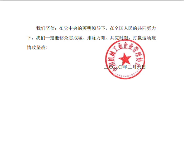 中機(jī)聯(lián)倡議書:堅(jiān)定信心 攻堅(jiān)克難 打贏疫情防控人民戰(zhàn)爭(zhēng)