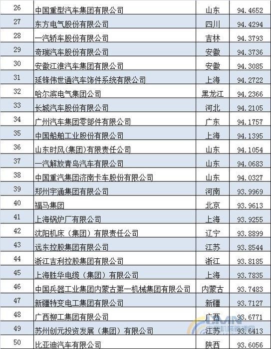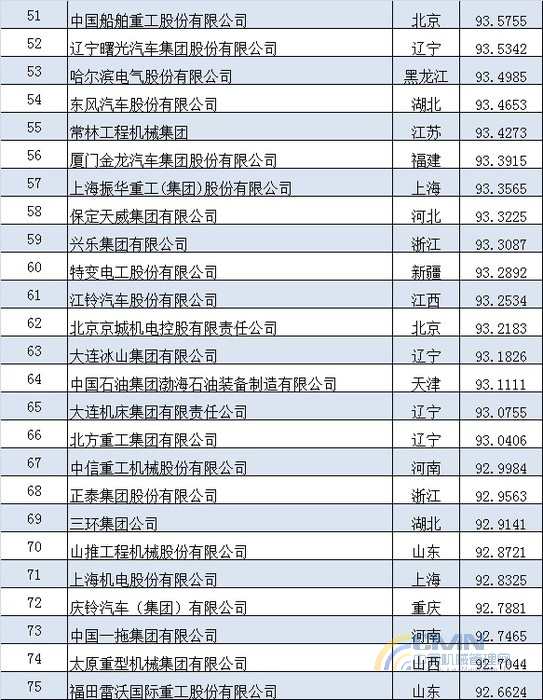 2012年中國機(jī)械500強(qiáng)排名(1-100)