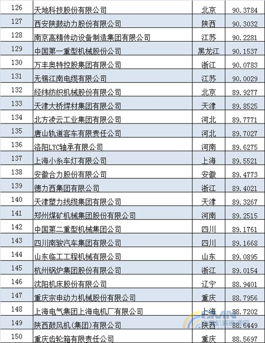 2012年中國(guó)機(jī)械500強(qiáng)排名(101-200)