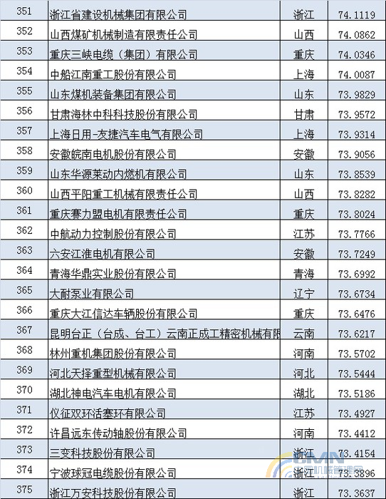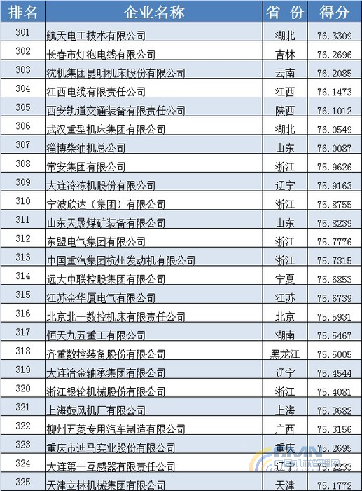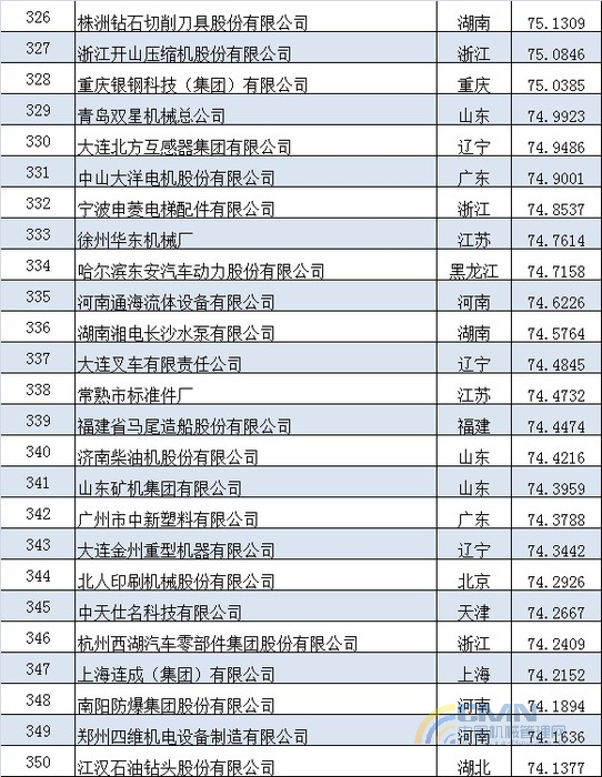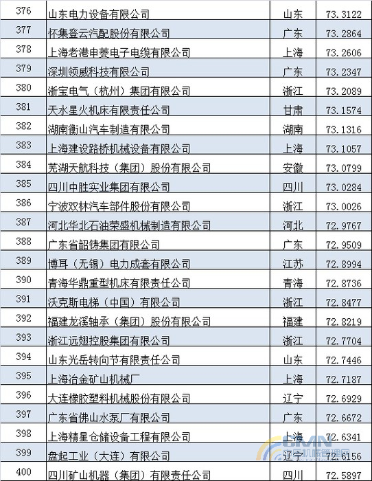 2012年中國(guó)機(jī)械500強(qiáng)排名(301-400)